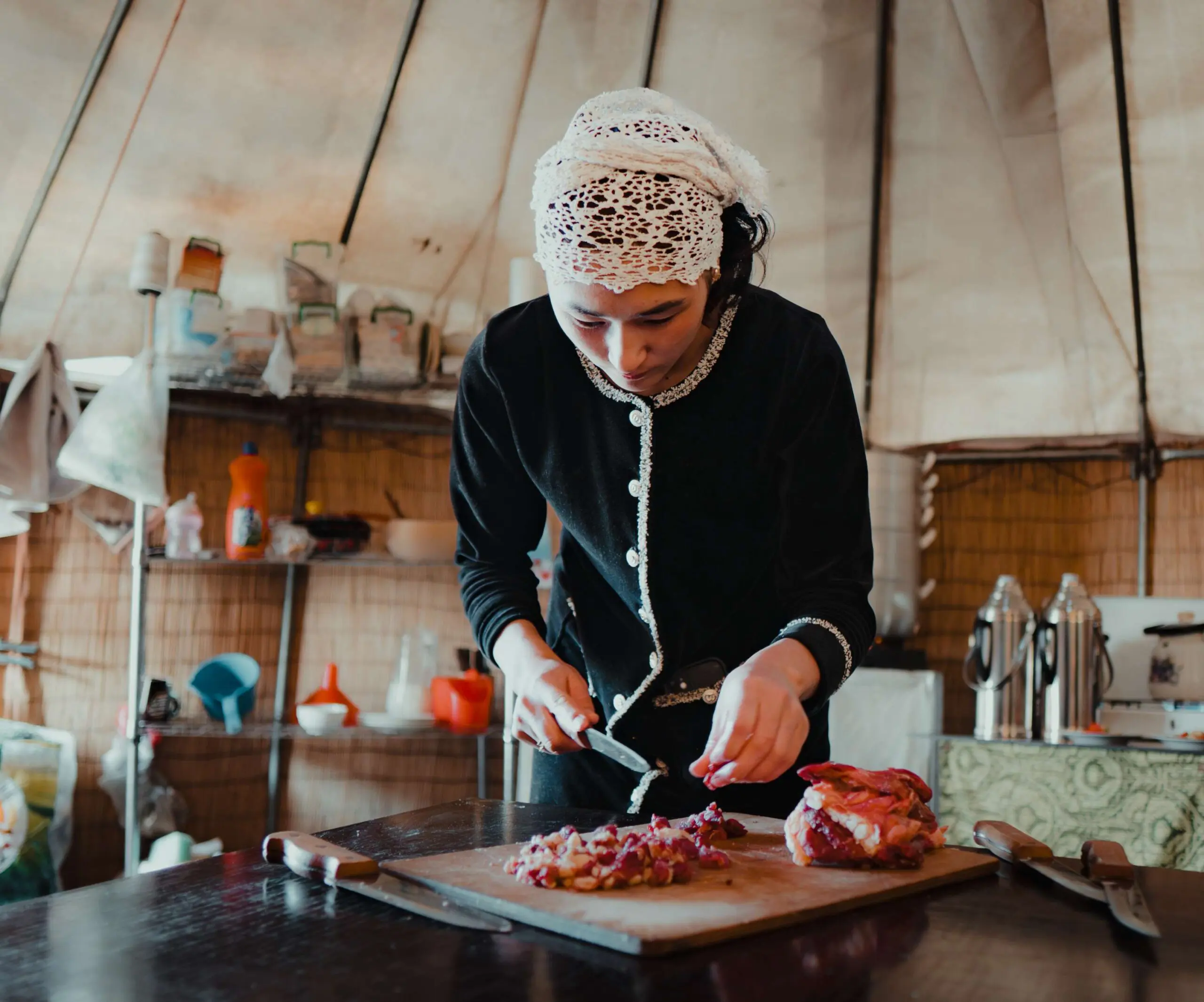 La démonstration de chasse à l’aigle au Kirghizistan est une expérience emblématique de la culture kirghize. C’est une tradition ancestrale vieille de 2000 ans où l’aigle royal, dressé par des fauconniers, chasse le gibier dans les steppes. Au cours de l’expérience, l’aigle est préparé pour aller chasser, il exécute différentes manoeuvres avant de revenir au bras de son maître, illustrant ainsi le lien profond entre l’homme et l’animal. Ce spectacle, souvent accompagné de récits et parfois de musique, vous plonge dans la culture nomade et l’histoire de cette pratique. Aucune proie vivante n’est traquée durant cette activité