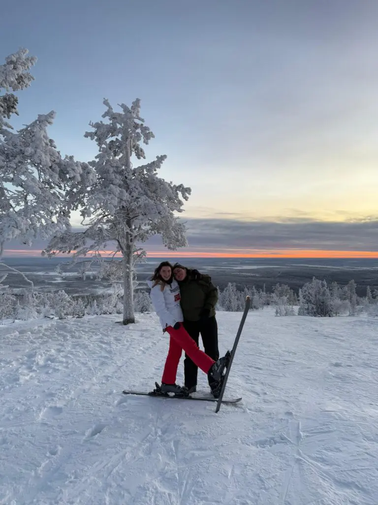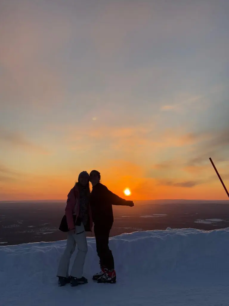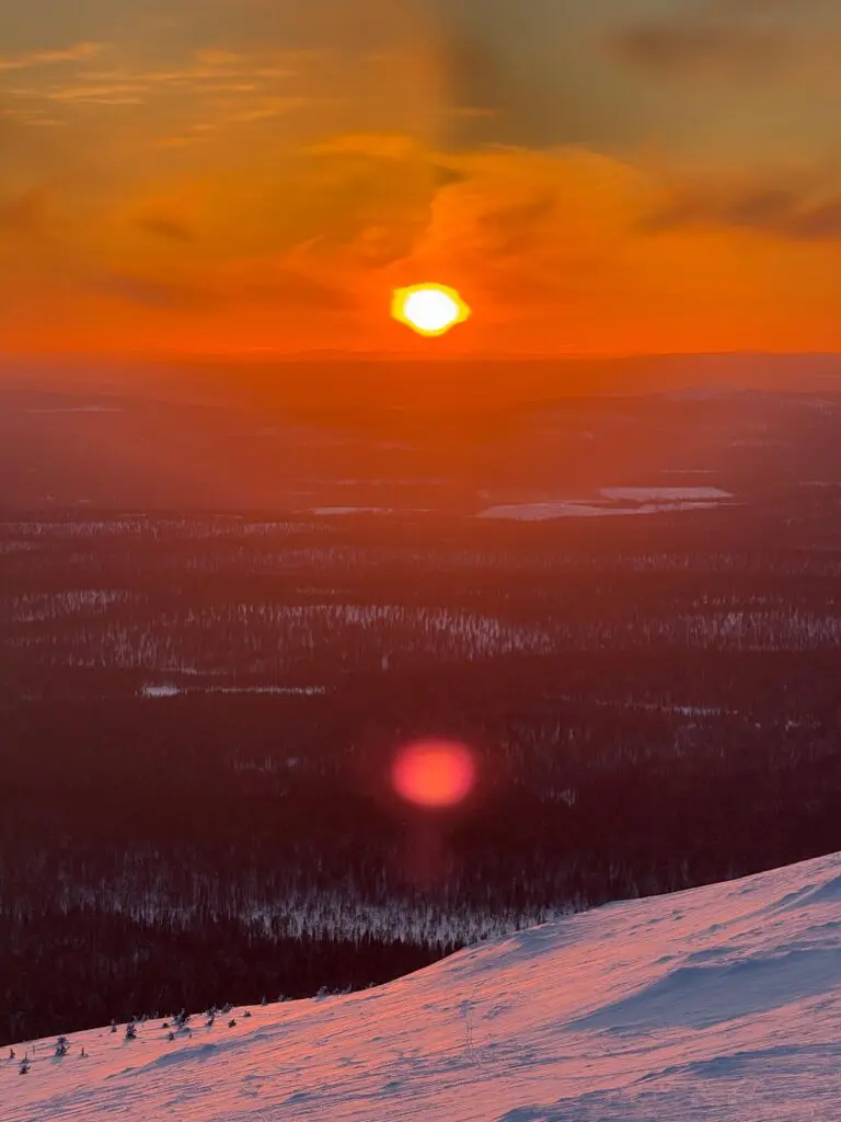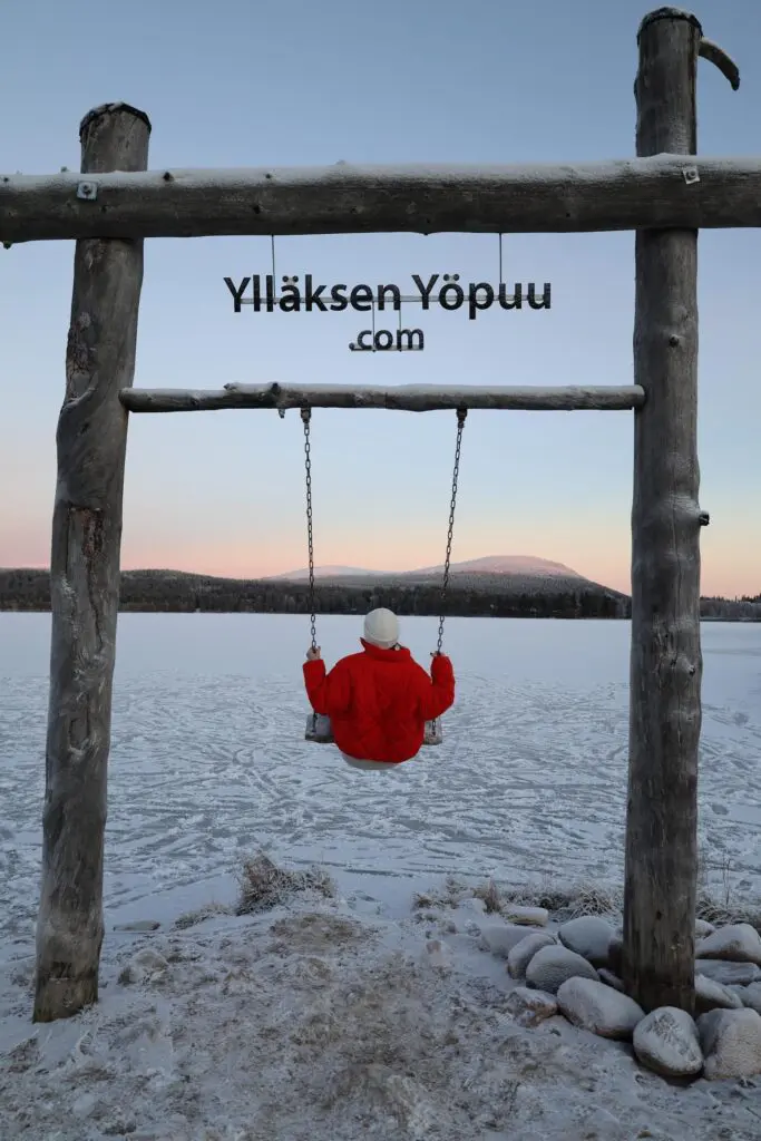 Nous séjournons dans deux magnifiques chalets à Äkäslompolo, un village féerique en Laponie finlandaise. Le village est dominé par un immense lac gelé, entouré de sept collines mythiques (les Seven Fells).