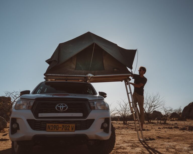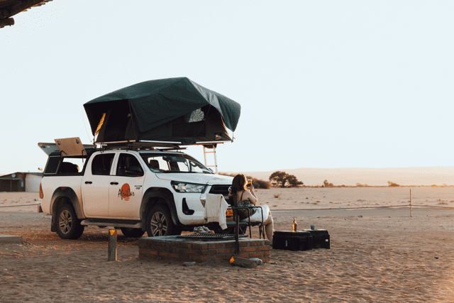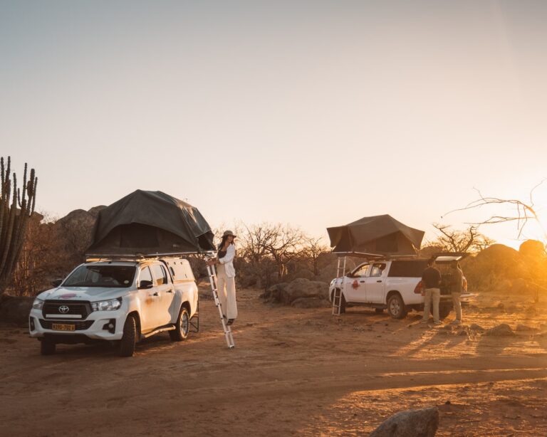 Lors de ce voyage, nous dormirons dans des campings, dans des tentes de toit installées sur nos 4×4. Notez que vous partagerez la tente avec un autre participant du même sexe.
