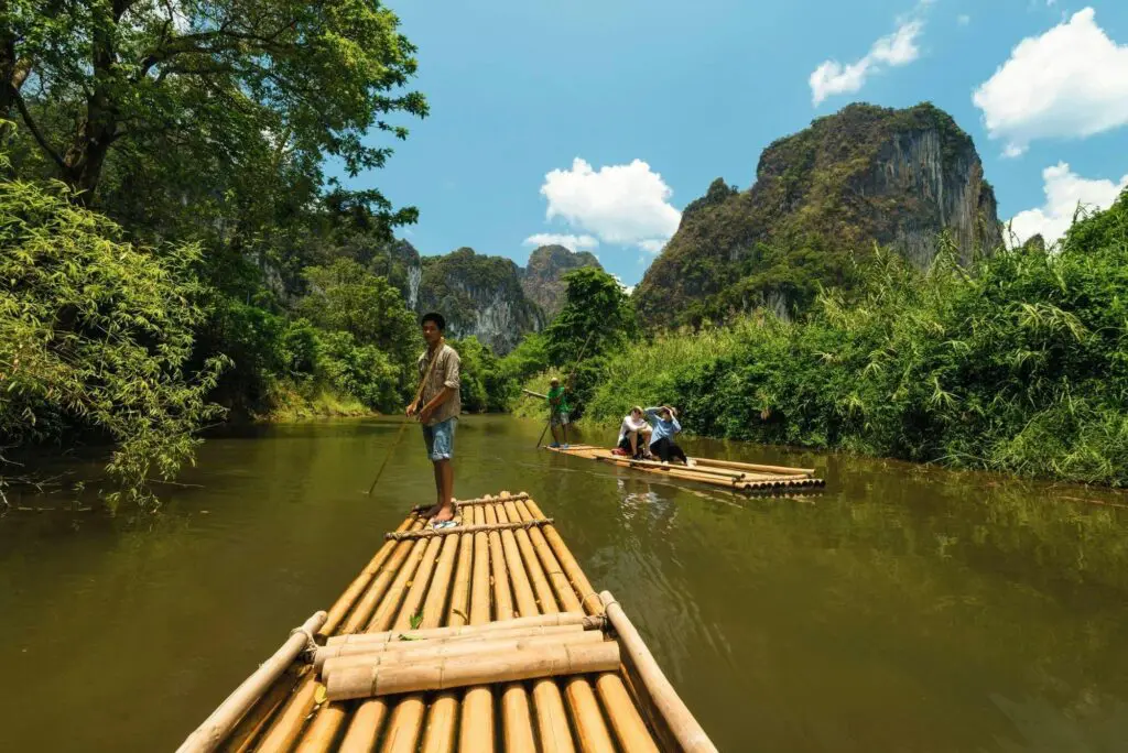 Cap ensuite sur la région préservée de Khao Sok : passez la nuit dans des cabanes sur pilotis, naviguez au cœur du parc et amusez-vous à bord d’un rafting en bambou. Puis, direction Krabi et ses falaises impressionnantes, ses plages paradisiaques et ses eaux turquoise. Une excursion d’île en île autour de Koh Phi Phi et un barbecue sur la plage viennent parfaire cette aventure tropicale.